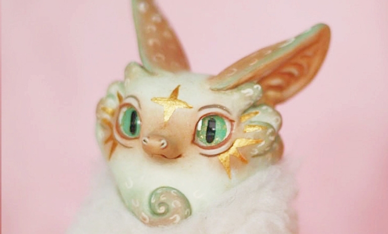 粘土の固定ポーズで、想像上の愛らしいキャラクターを制作しています。